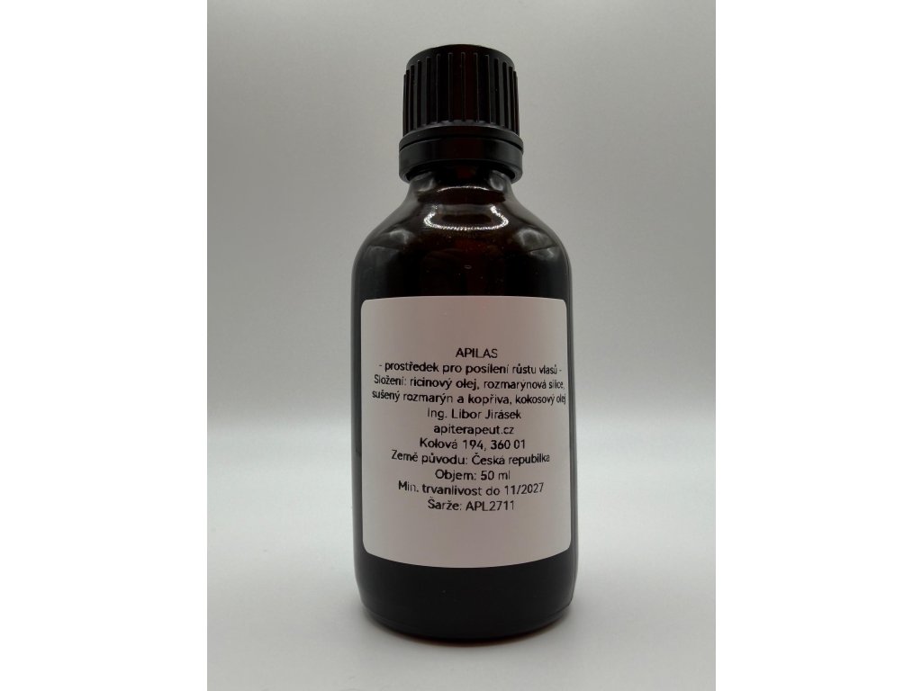 Apilas je lehký bylinný vlasový olej určený k péči o pokožku hlavy a ke zlepšení vzhledu vlasů. Kombinuje rostlinné oleje a bylinné extrakty (např. ricinový a kokosový olej, rozmarýnový olej, extrakt z kopřivy). Nejde o léčivý, ani zdravotnický prostředek.